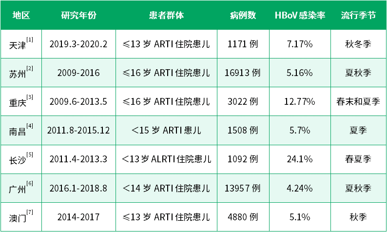 HBoV感染呈全球性分布,一年四季均可发生,季节性规律不明显,不同地区的流行季节存在差异。